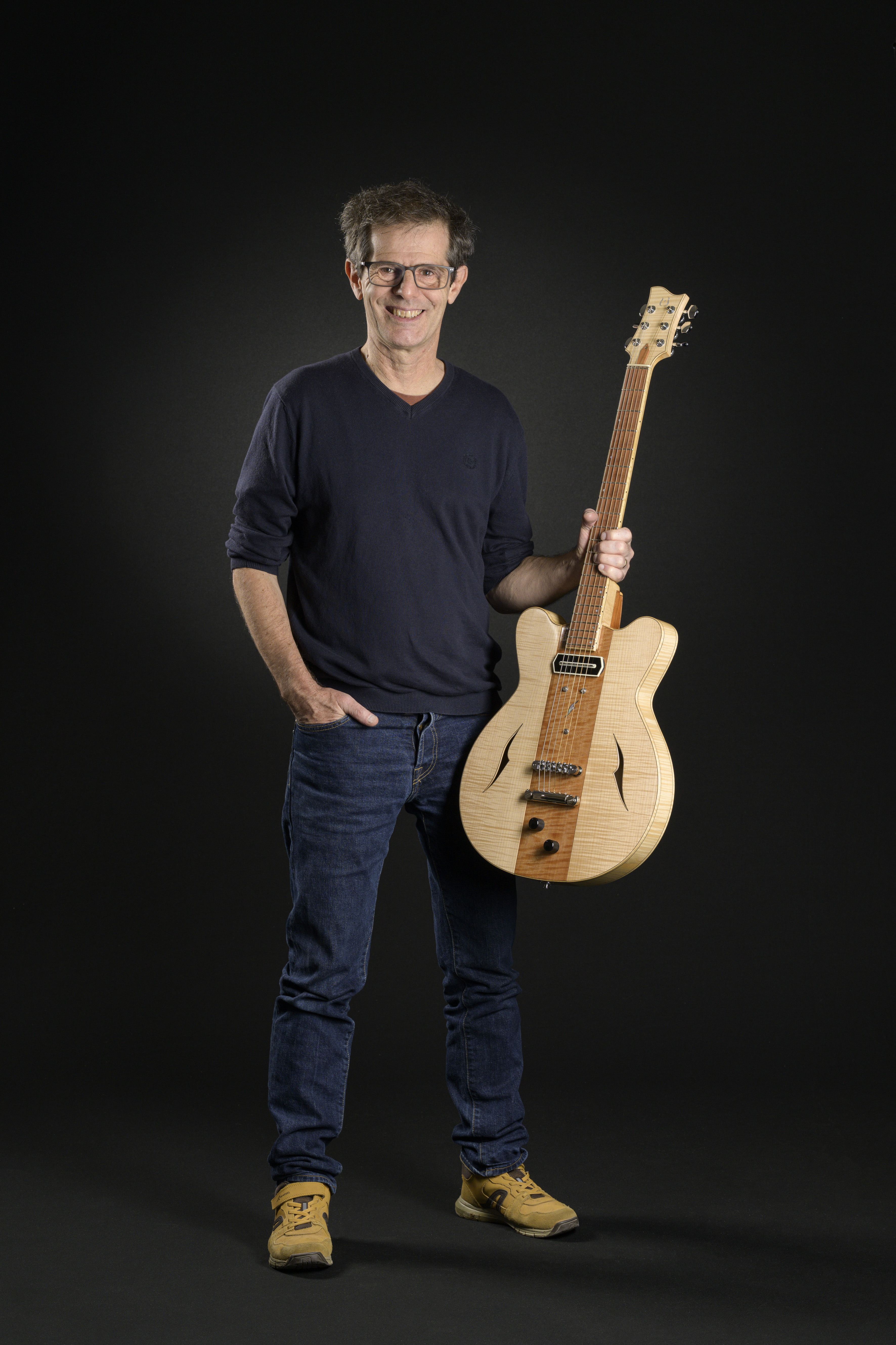 L’association a sorti un superbe premier catalogue des luthiers membres actifs – photos de Richard Storchi que nous remercions chaleureusement. Le luthier Hervé pose avec la guitare OSIRIS BlueNote modulaire d’ Action Jazz . Nous n’en avons plus, mais vous pouvez le commander directement sur le site de l’APLG à 25 € – Association Professionnelle de Luthiers en Guitares : https://www.aplg.fr/