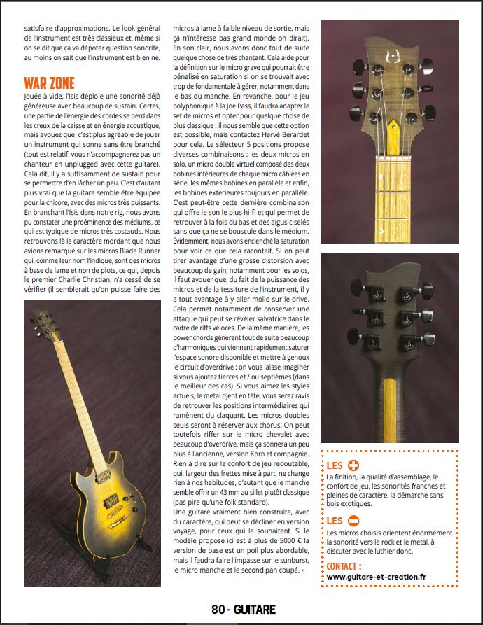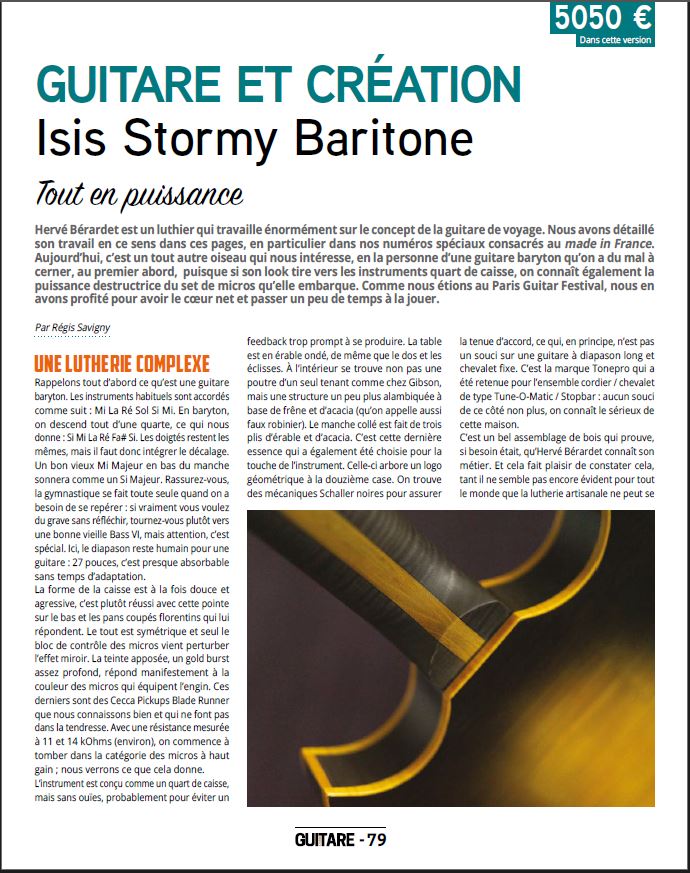 […] « Nous avons détaillé son travail en ce sens dans ces pages, en particulier dans nos numéros spéciaux consacrés au made in France. Aujourd’hui, c’est un tout autre oiseau qui nous intéresse, en la personne d’une guitare baryton … »