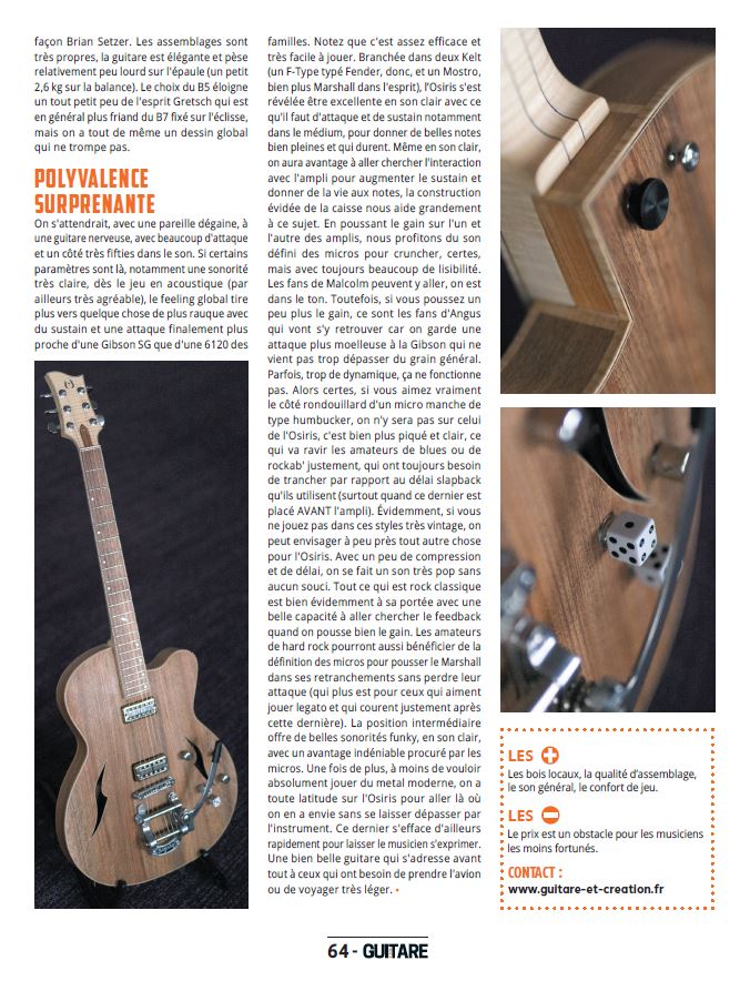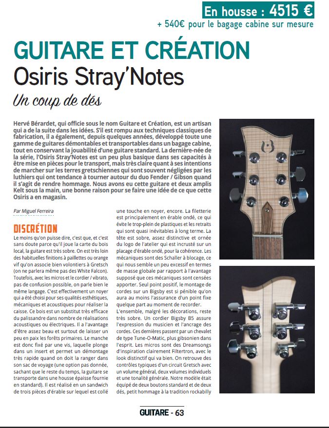 Dans le numéro 141, à propos d’OSIRIS Stray’Notes actuellement chez Guitare Village