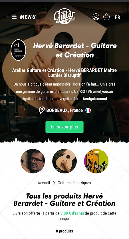 Qu’on peut retrouver directement dans l’onglet de notre menu en haut « La Boutique : The Guitar Division » .