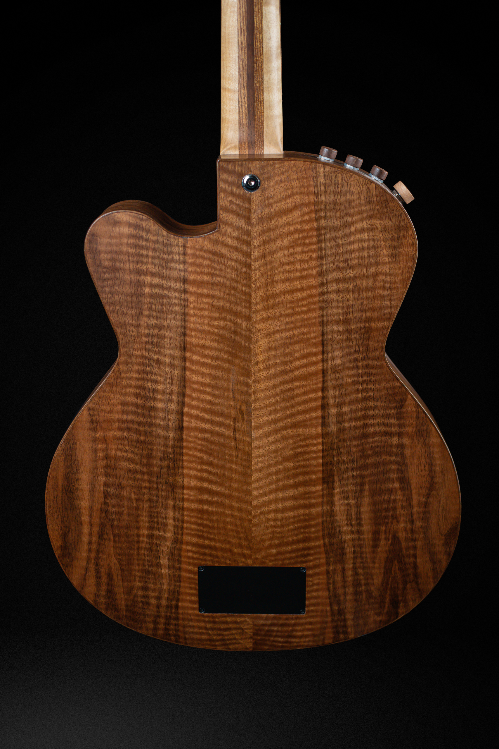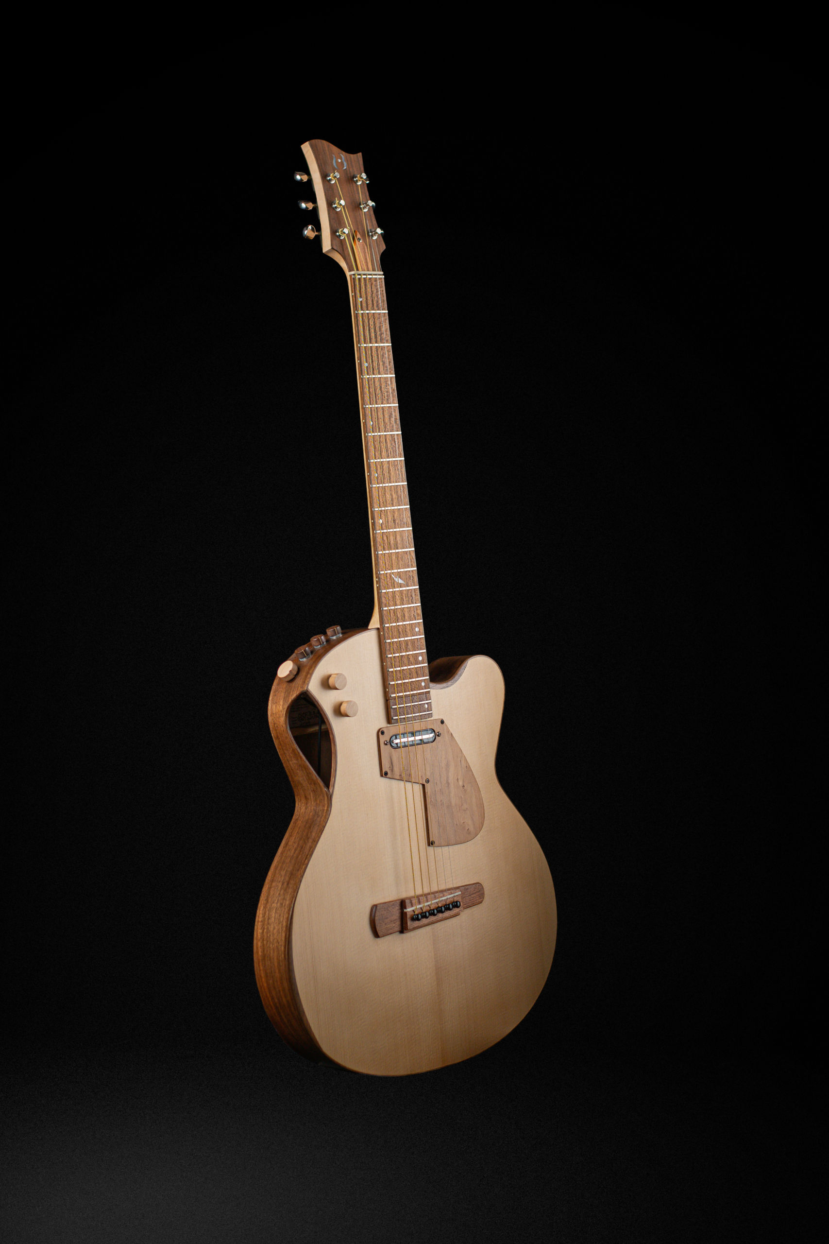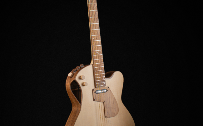 Le principe est celui de guitares acoustiques, en quart de caisse, avec une table d’harmonie en épicéa.