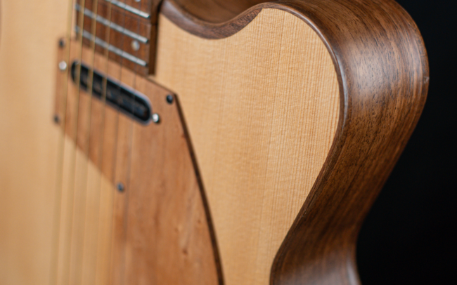 Dans l’esprit durable, nos choix de réaliser des guitares en 1/4 caisse ou « semi-hollow » répondent à la nécessité d’utiliser le moins de bois possible, et qui plus est, local.
