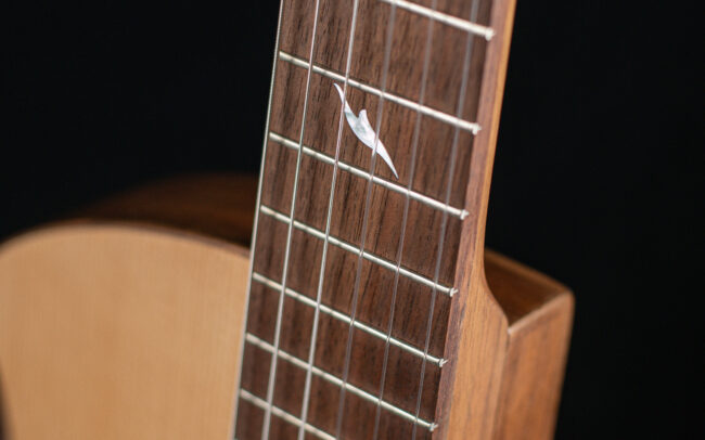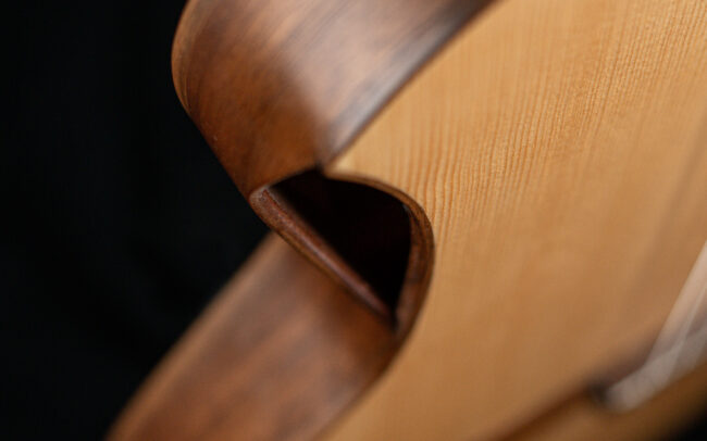 “La fabrication n’a fait aucun compromis. J’ai utilisé uniquement des bois locaux et européens issus de forêts tempérées. Aucun bois précieux issu de la contrebande n’est employé afin de préserver l’environnement. De même, sa finition est une huile dure écologique que j’utilise depuis 25 ans. Le résultat en est un instrument éthique et véritablement artistique. »