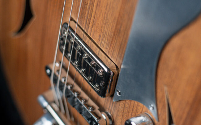 - Une 2ème partie centrale érable et 1 micro Humbucker Ou noyer et 1 micro P90 / Ou poirier et 1 micro Charlie Christian (+ 1400€ en modèle simple / + 1900€ en modèle haut-de-gamme)